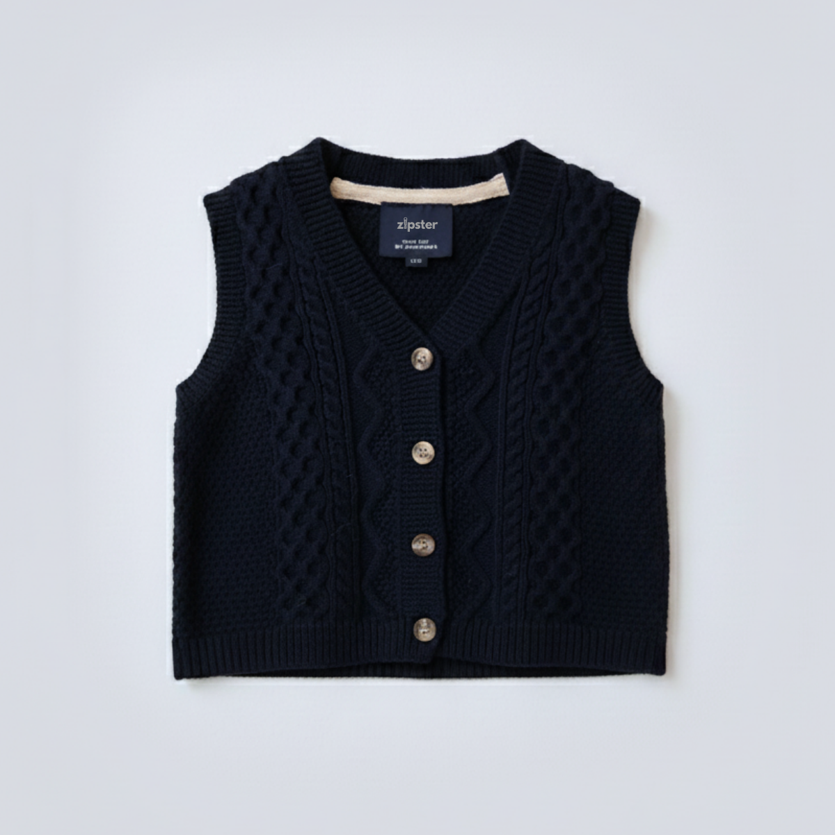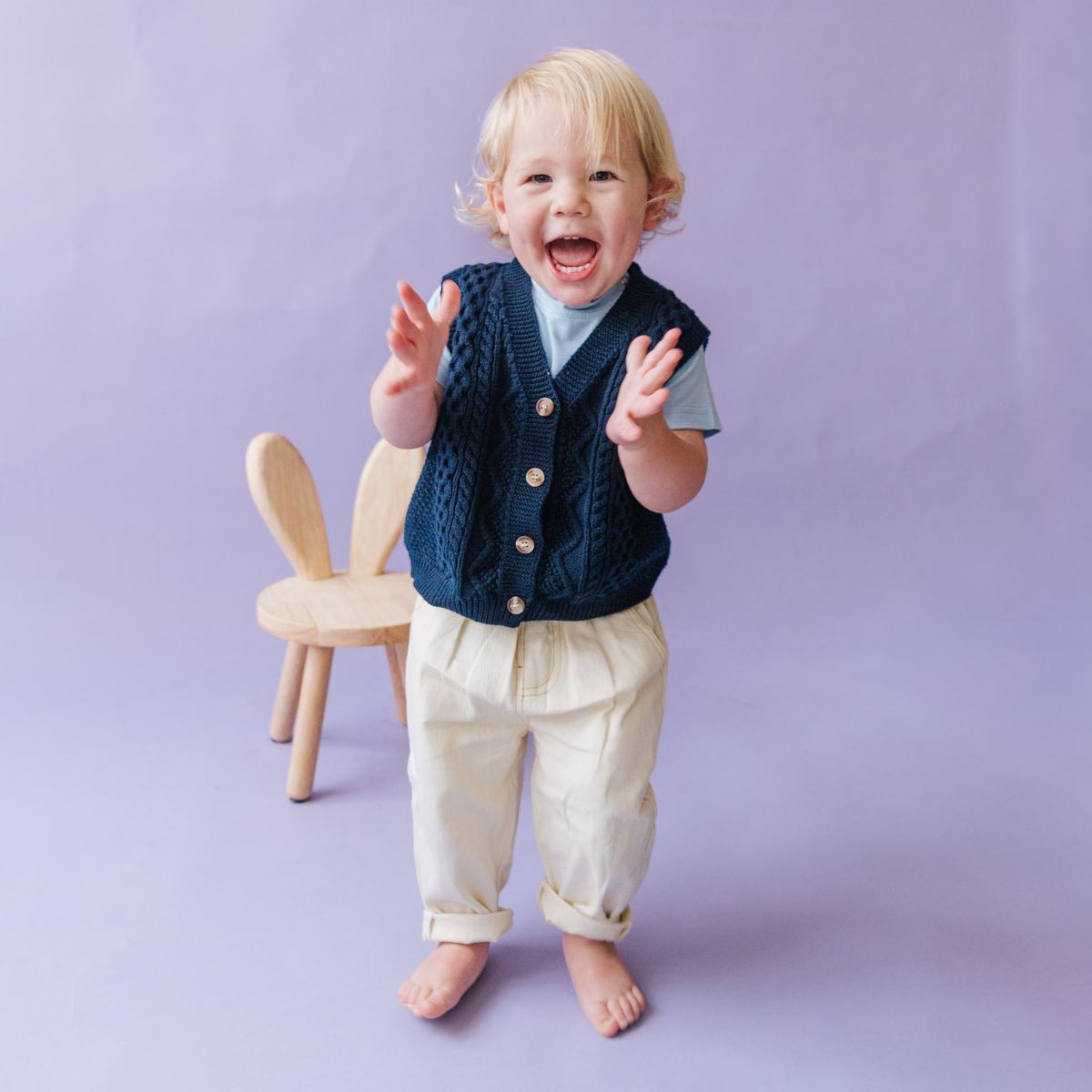 Unsere kuschelige Baumwollweste ist Teil der brandneuen Spielbekleidungsserie von Zipster und perfekt für kleine Entdecker.