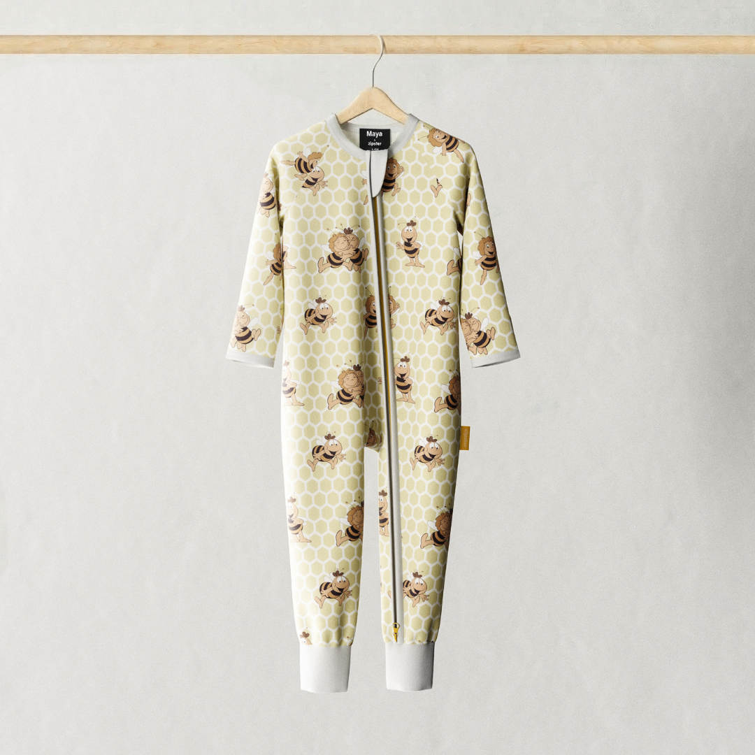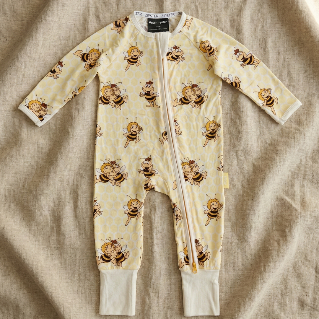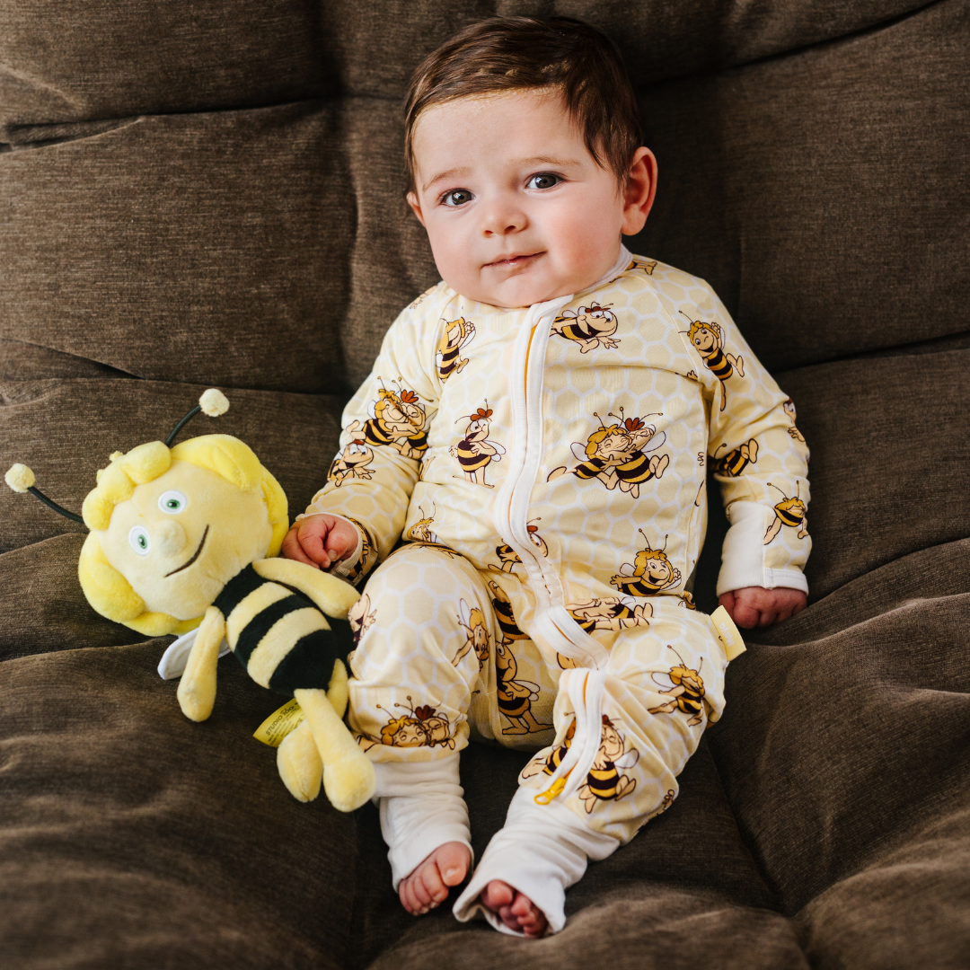 Forma parte de nuestra colección Zipster x La abeja Maya, con ropa y pijamas para bebés de bambú ultrasuave diseñados para la comodidad, el juego y las aventuras cotidianas.
